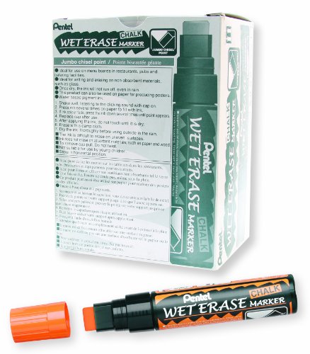 Pentel Arts Wet Erase Chalk Marker, Jumbo Tip, Orange Ink, Box of 12 (SMW56-F)